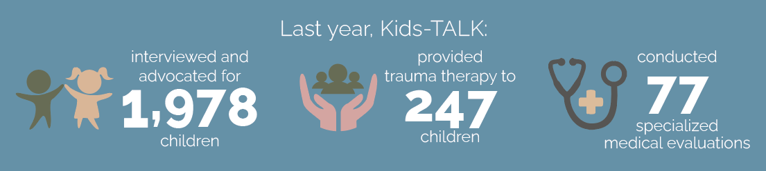 Every year in Wayne County, approximately 6,000 child abuse and/or neglect cases are verified. When these allegations involve sexual abuse or severe physical abuse, Kids-TALK is there to serve as a vital component of the investigative process, and more importantly, as an advocate for the child and family.